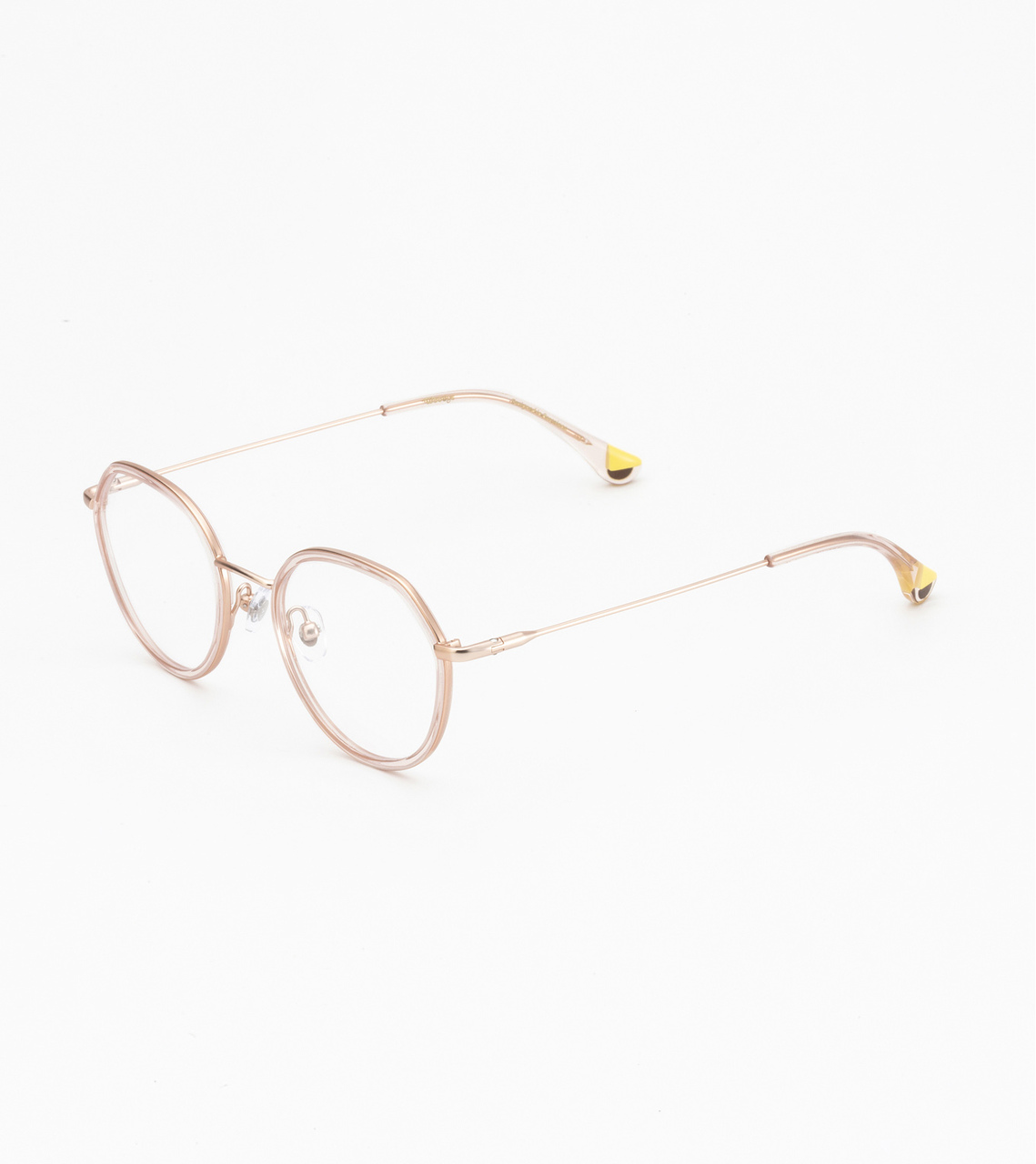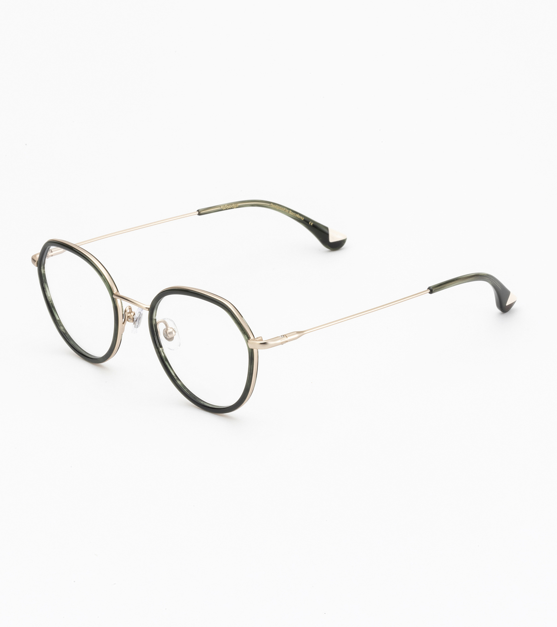 Σχεδιασμός που συνδυάζει μέταλλο και ιταλικό ασετάτ με ρυθμιζόμενα μαξιλαράκια μύτης. Μεταλλικοί βραχίονες με άκρες από ιταλικό οξικό.