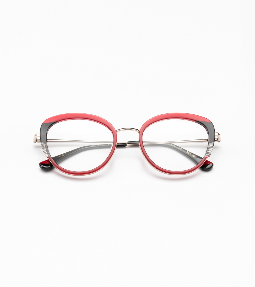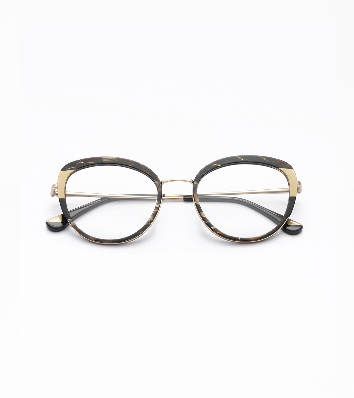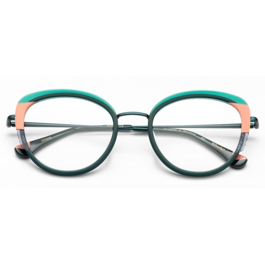 Σχεδιασμός συνδυασμού μέταλλο με δίχρωμη πλαστικοποίηση από ιταλικό οξικό άλας. Μεταλλικοί κροτάφοι με άκρες από ασετάτ και ξύλινο ένθετο.