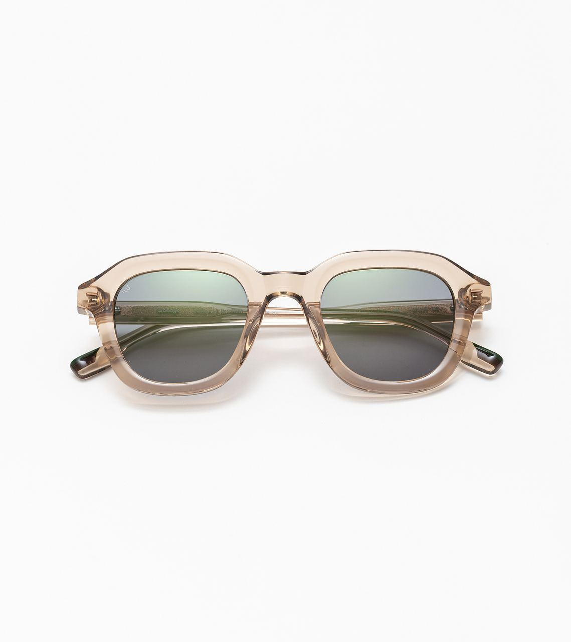 Ιταλικός σκελετός από οξικό άλας με φρεζαρισμένες λεπτομέρειες. Κρίκοι με χαραγμένο μεταλλικό πυρήνα. Πολωτικοί φακοί CR39 με υψηλή υπεριώδη προστασία που παράγονται από την Carl Zeiss Vision.