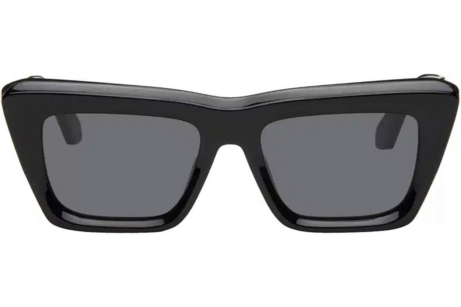 These OFF-WHITE sunglasses are black acetate with gray lenses.