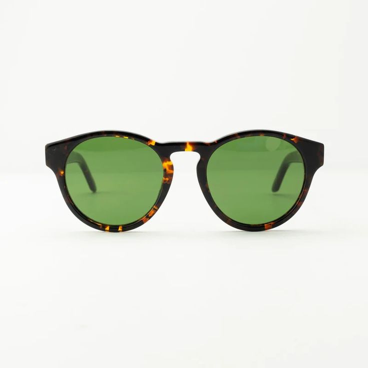 This round OFF-WHITE pair of sunglasses is made of acetate in black and brown tones, featuring green lenses.
