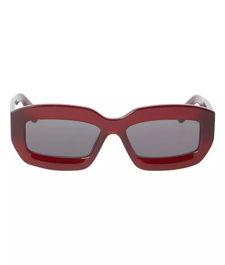 Αυτό το ορθογώνιο γυαλί ηλίου OFF-WHITE είναι κοκκάλινο σε χρώμα κόκκινο με γκρι φακούς.