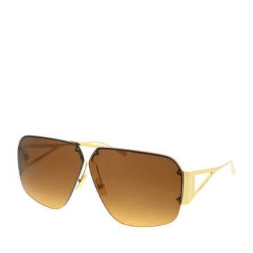 Γυαλιά Ηλίου Bottega Veneta σε oversided τετράγωνο σχήμα. Ο σκελετός έχει ιδιαίτερους μεταλλικούς βραχίονες σε χρυσό χρώμα και οι φακοί είναι οργανικοί, 100% απορροφητικοί στην υπεριώδη ακτινοβολία. Ιδανικό για πρόσωπα σε σχήμα καρδιά, οβάλ και στρογγυλά.