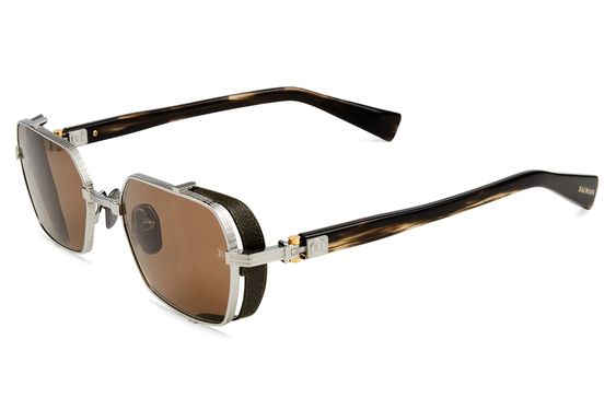 Vintage frame with titanium side shields, thin temples, silver-tone finishes, gray shaded anti-glare lenses, 100% UV protection