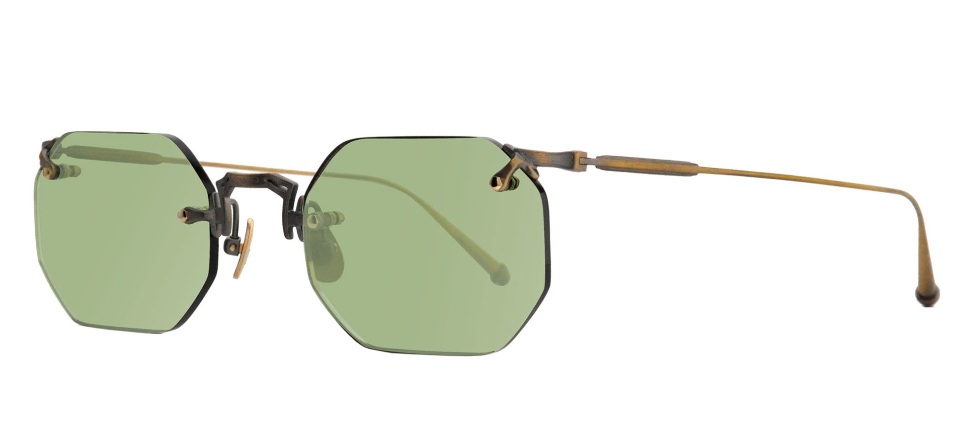 The M3104 is a classic hexagonal drill mount style crafted of ultra lightweight titanium. Rimless designs originated in the late 1800's as an innovation to make eyewear lighter and more comfortable. Our modern interpretation stands out with hand engraved details adorning the top and bottom of the beta titanium temples, complementing the classic construction.