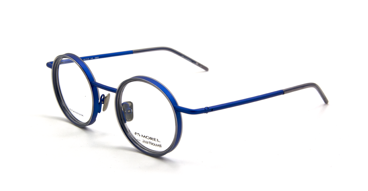MOREL and Jean Nouvel explore new combination of material. As surprising as it is exceptional, this combined eyewear offers a highly technical product. A metal structure reveals a flat titanium "drageoir" delicately inserting a thin circle of colored acetate.