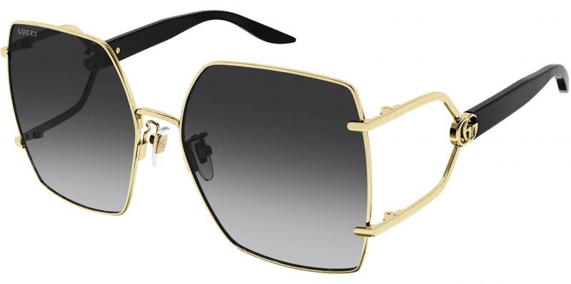 Metal glasses with front attachment for a vintage look embellished through the recognisable fork construction on the temple. Squared oversize metal shape. GG running logo on the combi temple. Shiny color palette with gradient commercial lenses.