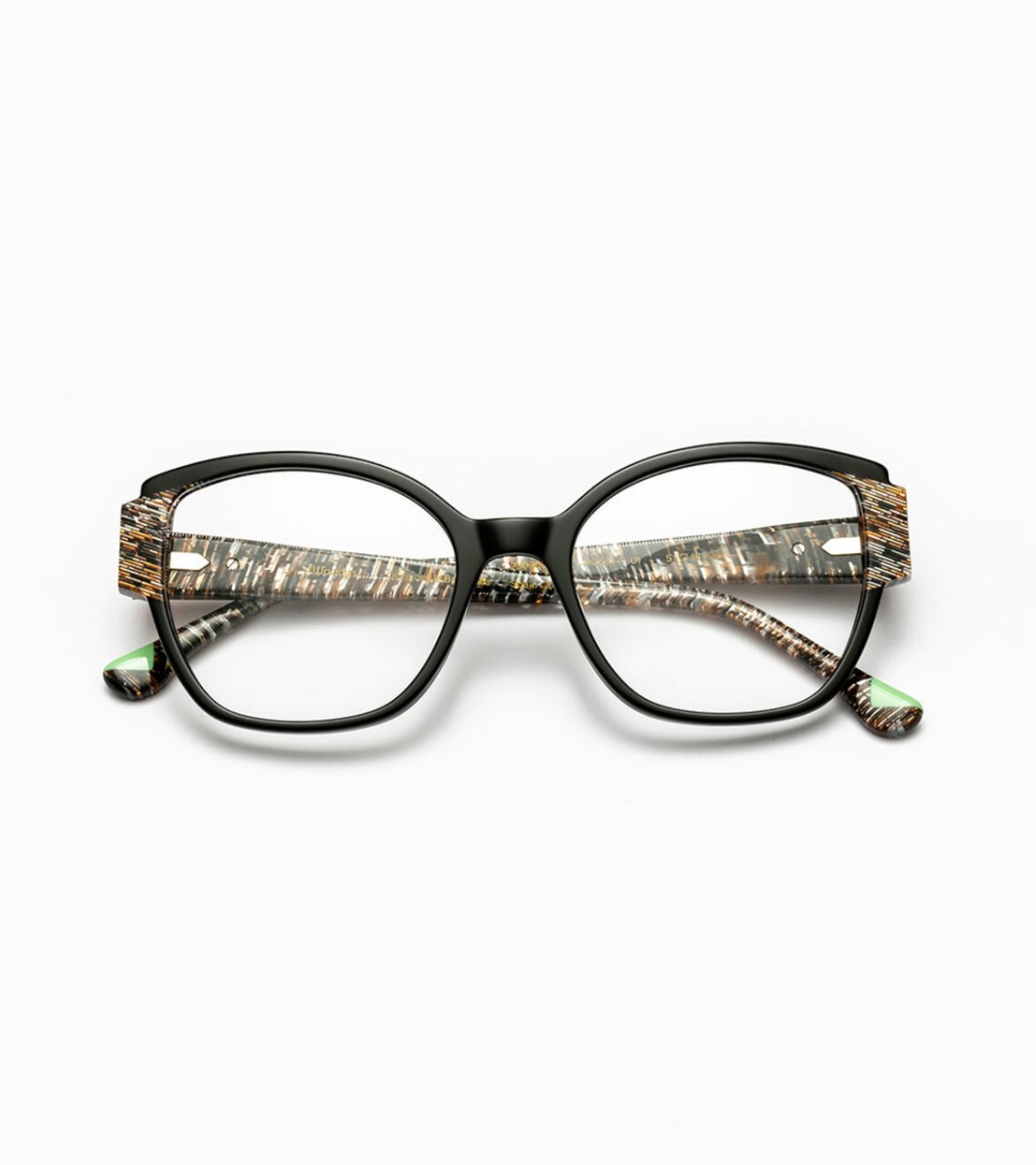 Το μοντέλο Holly είναι κατασκευασμένο από ιταλική ακετάτη, με τετράγωνο σχήμα και μια διακριτική πινελιά τύπου πεταλούδας. Η διπλή επένδυση ακετάτης στα πλάγια το κάνει ακόμη πιο ξεχωριστό, μαζί με τη μικρή χρωματική λεπτομέρεια και την ξύλινη επένδυση στις άκρες. Διαθέτει γερμανικούς μεντεσέδες OBE Spike.