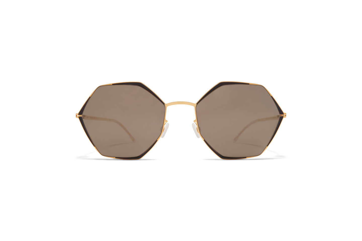 Made of lightweight stainless steel, ALESSIA in Gold/Jet Black with Brilliant Grey Solid lenses is a square shaped sunglass frame from the MYKITA DECADES collection with a geometric rim design. Handcrafted in Berlin.